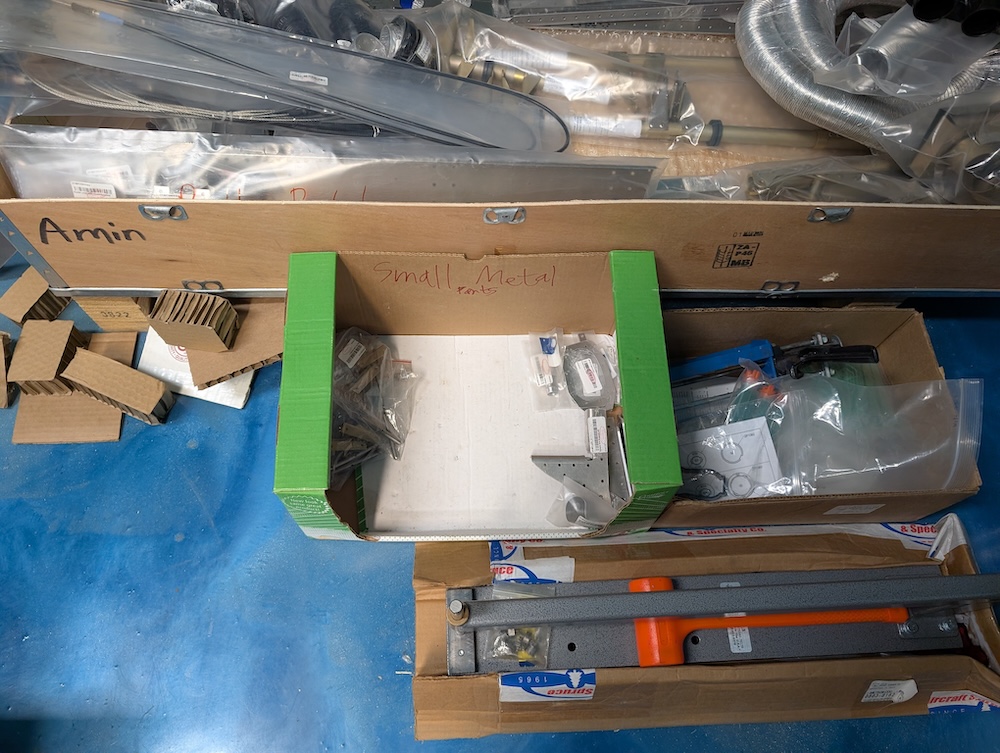 We opened up the fuselage kit and did inventory for most of the parts, except the skin panels, mostly because of the limited space in our 2-car garage.