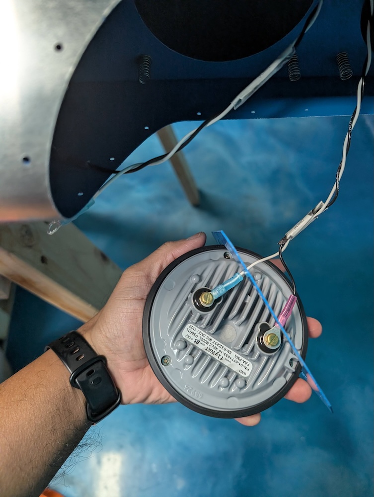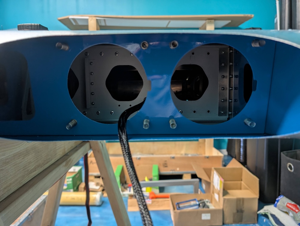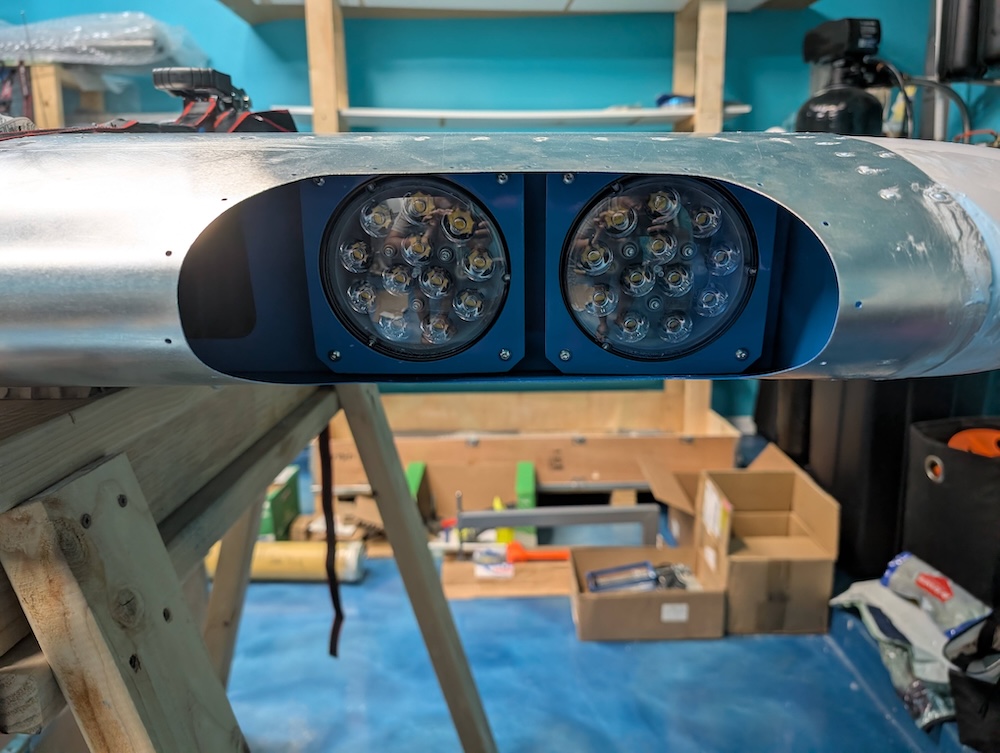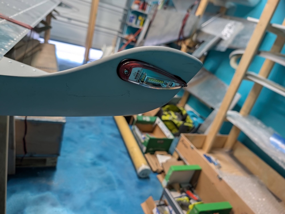 We installed the left wing inspection hatches, as well as lights for landing, taxi and wing tip lights (position + strobe).