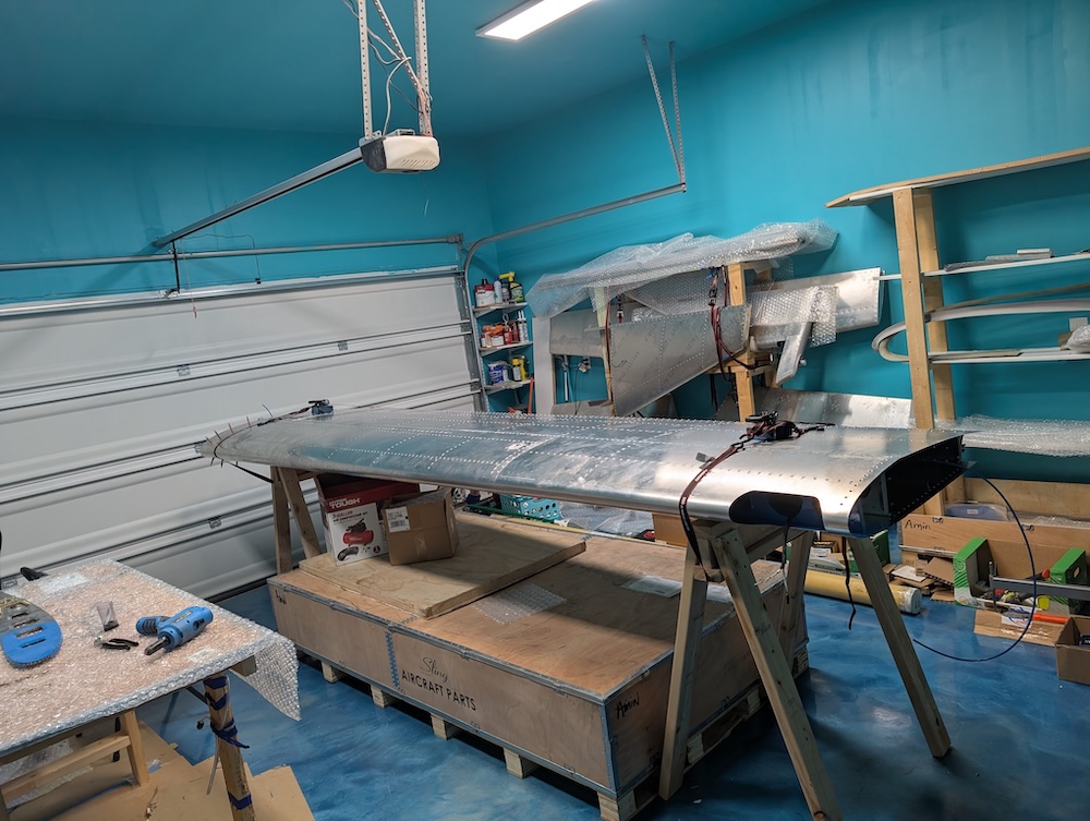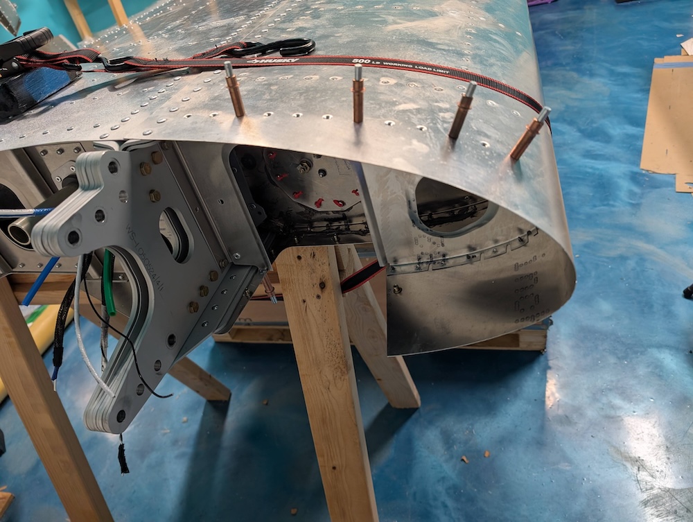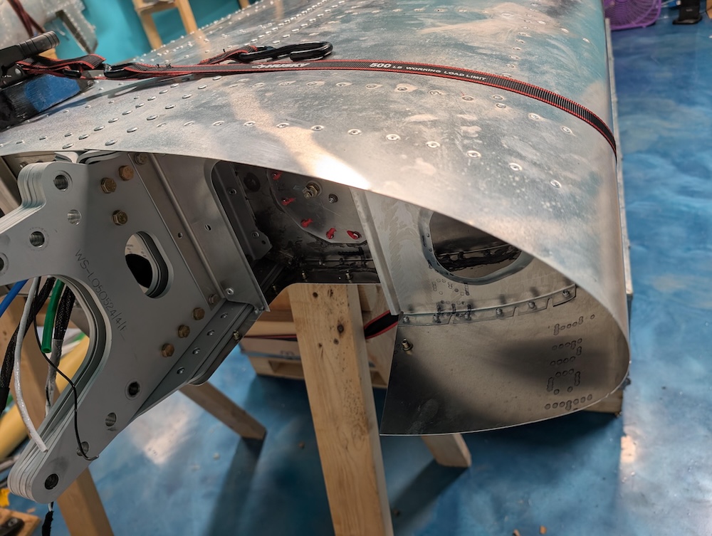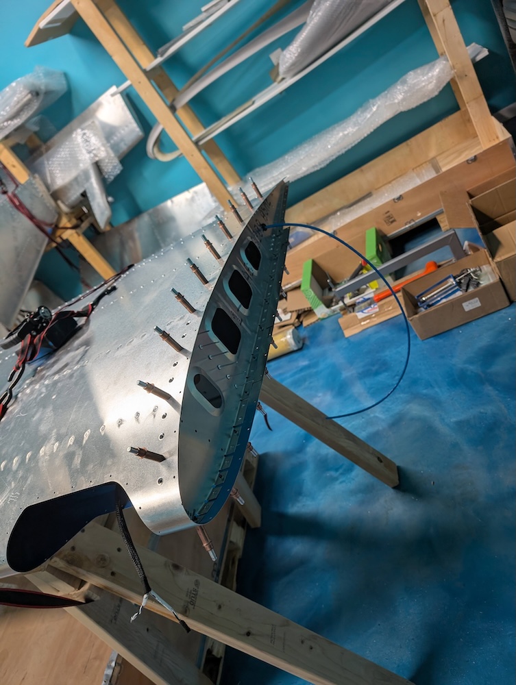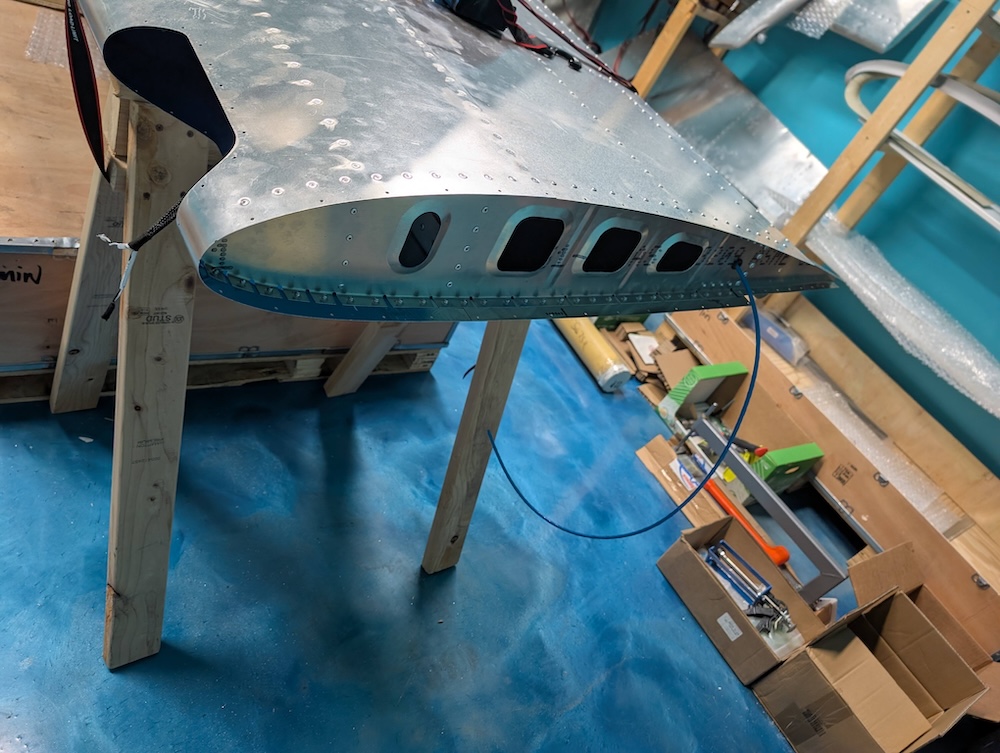 The wing was also removed from the jig, and some of the rivets which were blocked by the jig have been riveted as well.