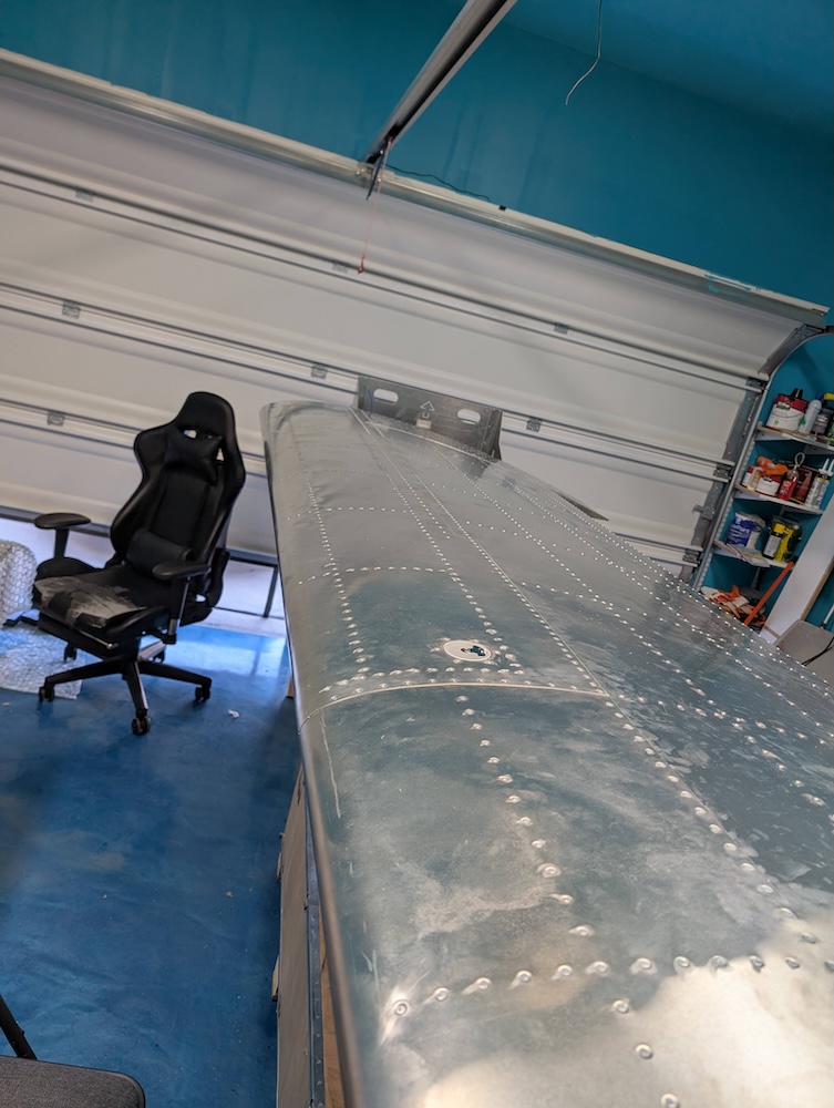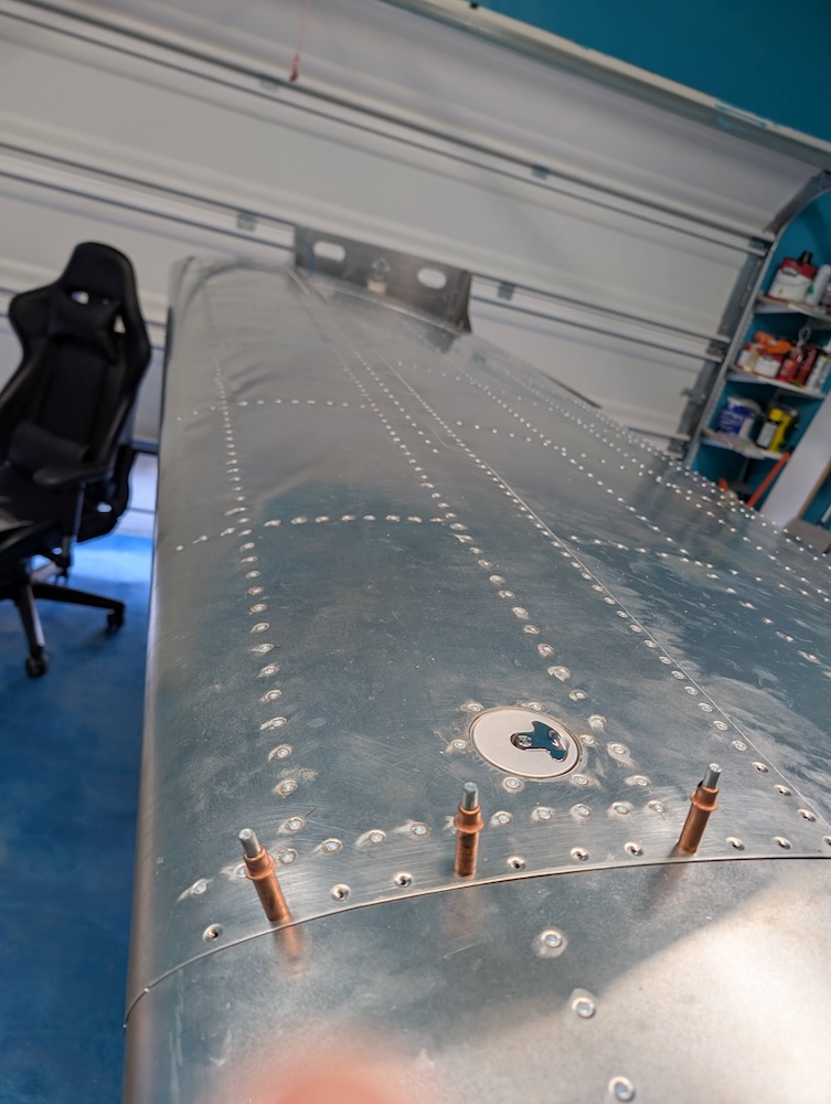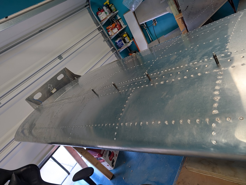 We installed the left tank to the wing structure. It was pretty straightforward, similar to the right wing installation. Positioning the tank initially was tricky, but once that was achieved, clecoeing and riveting was pretty straightforward.